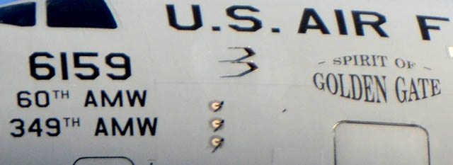 | Spirit of Golden Gate | 06-6159 | Travis AFB | California | P-159 | 2014/05/18 |
