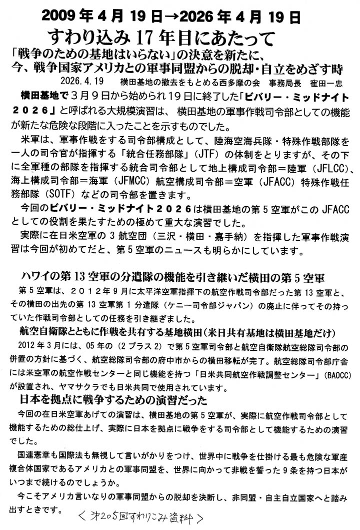 横田基地撤去を求める西多摩の会 2026年4月